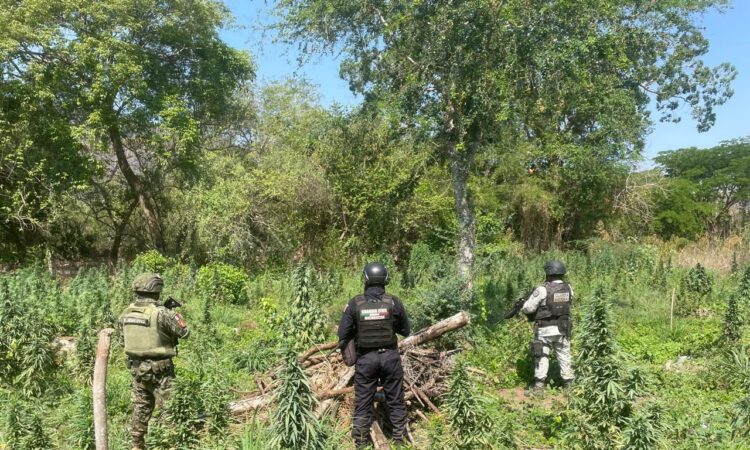 SSP y Defensa destruyen plantío de marihuana en Coahuayana