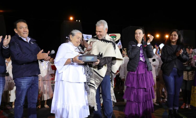 Ramírez Bedolla felicitó a las portadoras y portadores de tradiciones de los pueblos originarios participantes y entregó reconocimientos a María Ramírez León, de la comunidad de Santiago Conguripo; a Celestino Benítez Espinoza, de Cutzio; a Telésforo Pablo Silvestre, de Cucuchucho; y a Jorge Cira Ramos, de Ucazanaztacua. “Que viva la K’uínchekua y que viva Michoacán”, expresó.