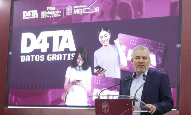 Morelia, Michoacán, 16 de marzo de 2026.- Para que ningún joven de preparatorias, institutos tecnológicos y universidades públicas de Michoacán se quede sin internet gratuito como una herramienta necesaria para apoyar sus estudios y reducir la brecha digital, el Gobierno estatal ampliará el registro al Programa Data, anunció el mandatario Alfredo Ramírez Bedolla.